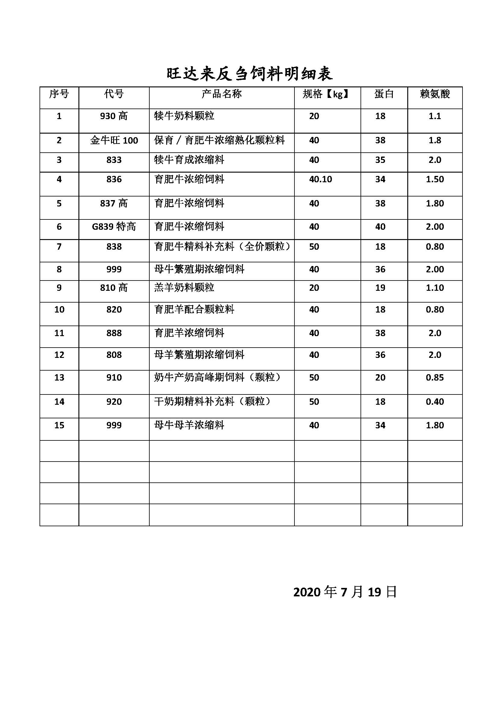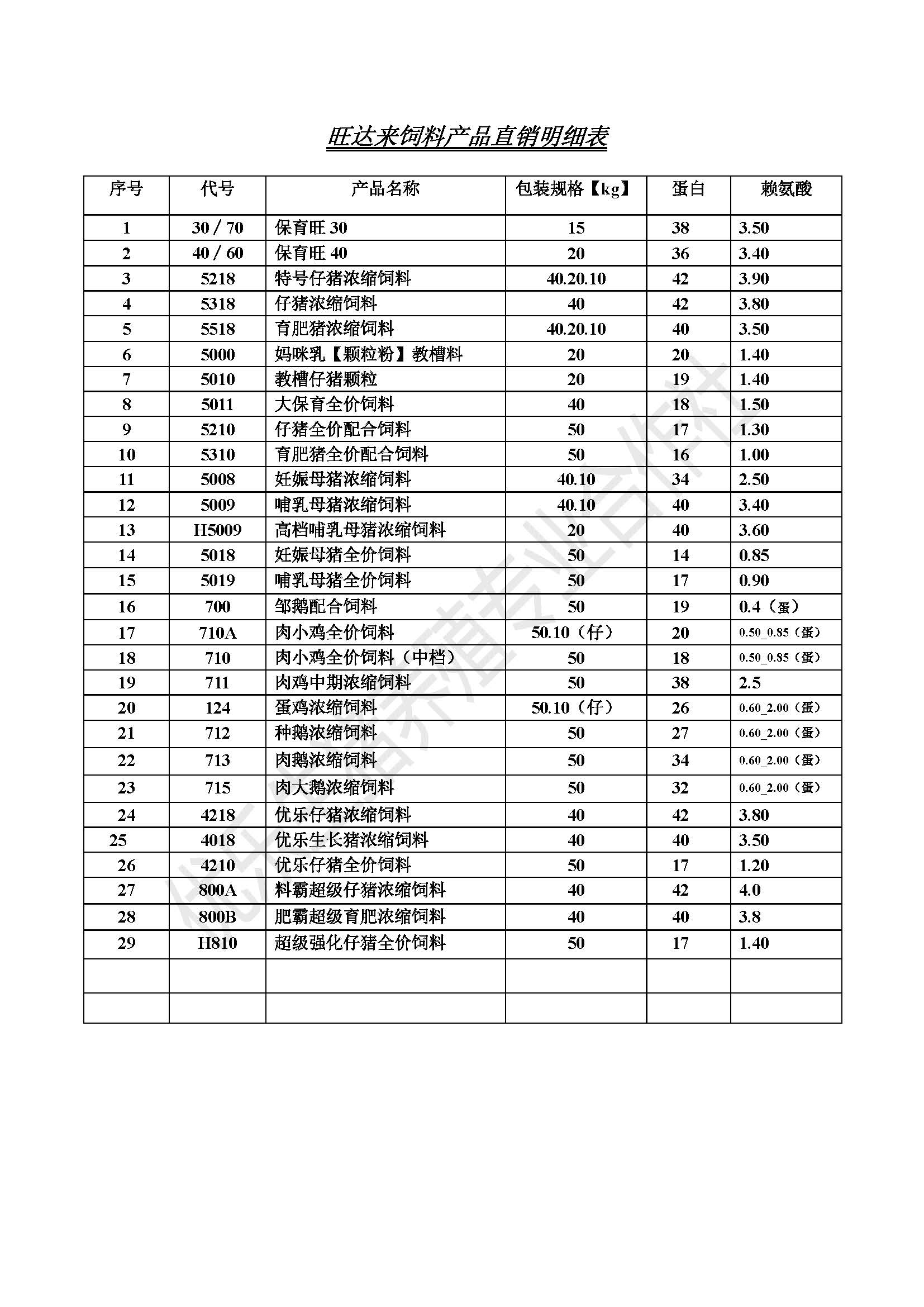 明細(xì) 豬飼料 羊飼料 牛飼料 雞飼料 鵝飼料